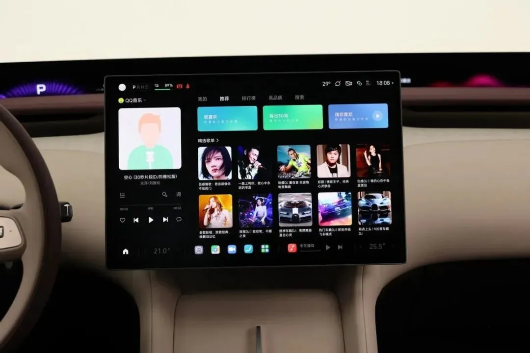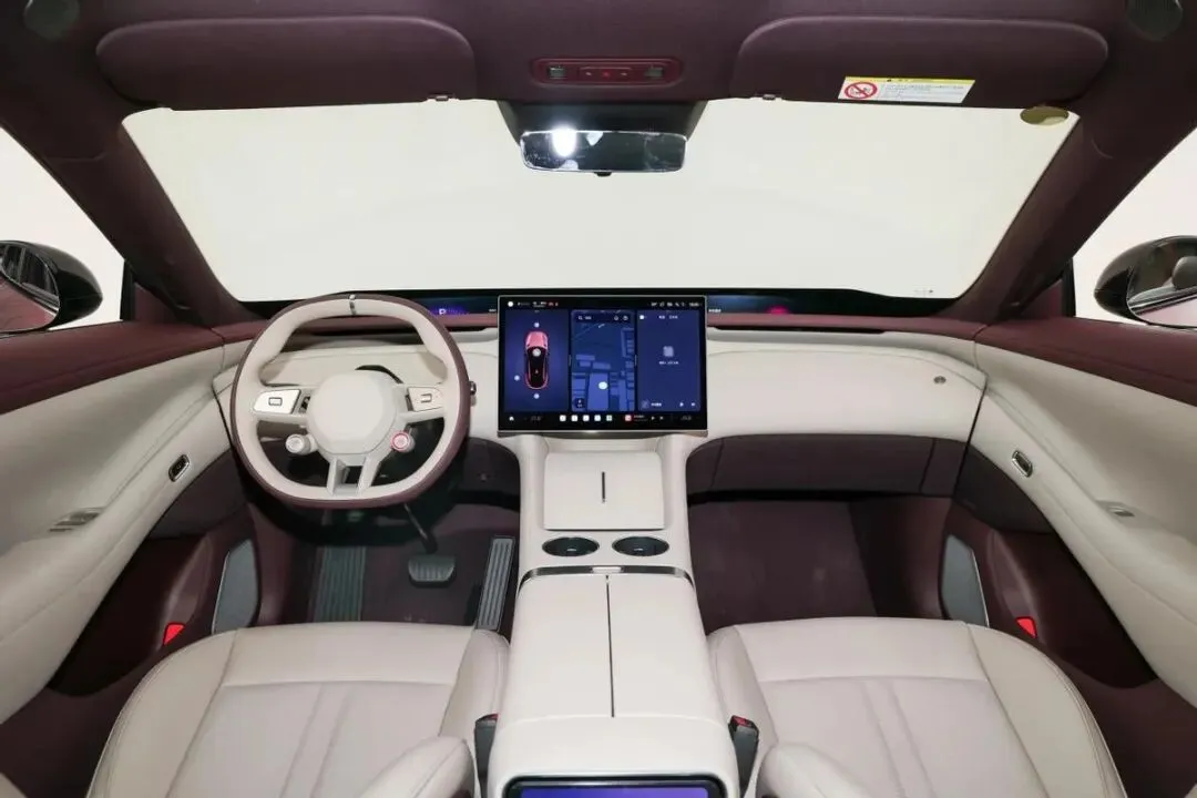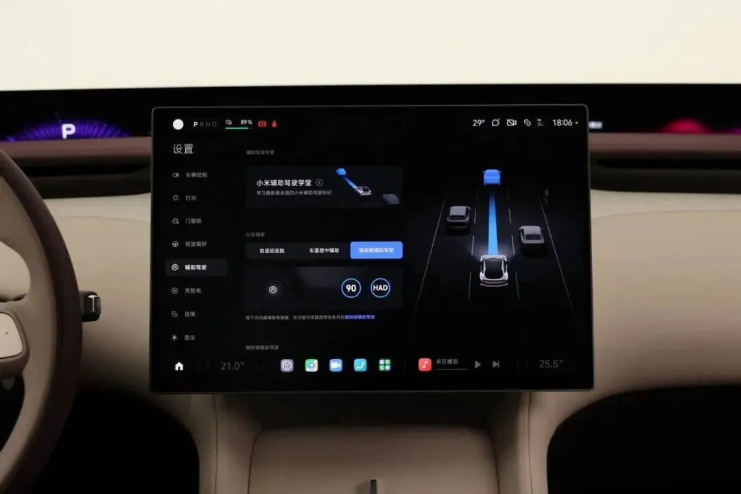小米YU7的内饰简约而富有科技感,车内配备了真皮方向盘,附带的方向盘加热功能,对北方用户很友好,而换挡方式也是新能源车惯用的电子式怀挡,操控便捷。中控台中间是一块16.1英寸中控屏,它采用高通骁龙8 Gen3车机芯片,搭载的是小米自研的Xiaomi HyperOS操作系统,像5G网络、应用下载、语音识别等功能悉数支持。其次,车内还配备了自动防眩目内后视镜、256色主动式环境氛围灯、HUD抬头显示系统、80W手机无线充电面板等配置。