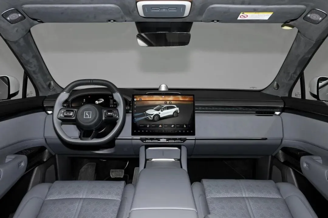 智己LS6纯电版车内配备了带加热等功能的真皮方向盘,搭配操控方便的电子式怀挡,高配车型还配备了车载冰箱等配置。车内配备了27.1英寸一体屏,内置高通骁龙8295芯片,支持5G网络、语音识别、应用下载等功能。智己LS6全系支持L2级辅驾,采用IM AD辅驾系统,内置NVIDIA DRIVE Orin X辅驾芯片,除纯电入门款外,其它车型的辅驾硬件都标配了1颗激光雷达,纯电版所有车型都支持自动辅助泊车入位、循迹倒车等功能,但高/城领航等功能也需选装。