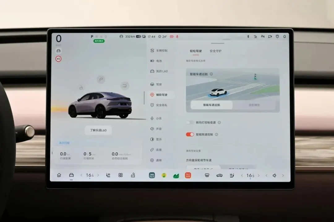 25款乐道L60配备了带加热、记忆等功能的皮质方向盘,换挡方式也采用电子式怀挡,车内还配备了自动防眩目内后视镜、1600万色主动式环境氛围灯、18个扬声器、50W手机无线充电面板等配置。车机集成了17.2英寸中控屏、8英寸后排液晶屏、13英寸HUD抬头显示系统,中控屏也采用高通骁龙8295芯片,并搭载SkyOS天枢操作系统,像5G网络、语音识别、应用下载等功能悉数支持。25款乐道L60支持L2级辅驾,采用OSD辅驾系统,和NVIDIA DRIVE Orin X辅驾芯片,辅驾硬件包括1颗毫米波雷达在内的26个传感硬件,支持全速自适应巡航、自动辅助泊车入位等功能。