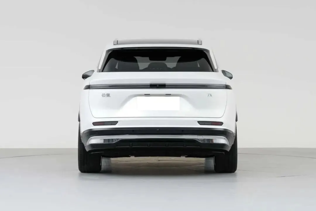 极氪7X是极氪推出的一款中型SUV,其中26款指导价22.98-26.98万,其前脸采用半封闭设计,搭配狭长的贯穿式灯组和发光LOGO,侧身采用双拼色设计,搭配悬浮式车顶,以及带隐藏式门把手的无框车门,尾部带贯穿式尾灯和扰流板,整体外观大气时尚。26款极氪7X车长4825mm,轴距为2925mm,车内乘坐空间充足,行李舱常规容量905L,支持拓展到1978L。
