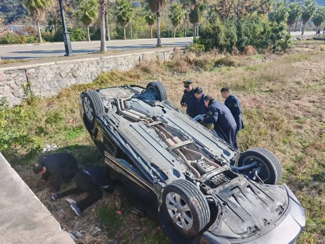 近日,乐清市综合行政执法局雁荡执法中队队员开展日常巡查时,在辖区田间发现一辆轿车不慎翻倒,车辆侧翻后处于不稳定状态,情况十分危急。执法队员立即赶赴现场,发现车内共有5名群众被困,部分人员因撞击出现不适,情绪较为紧张。