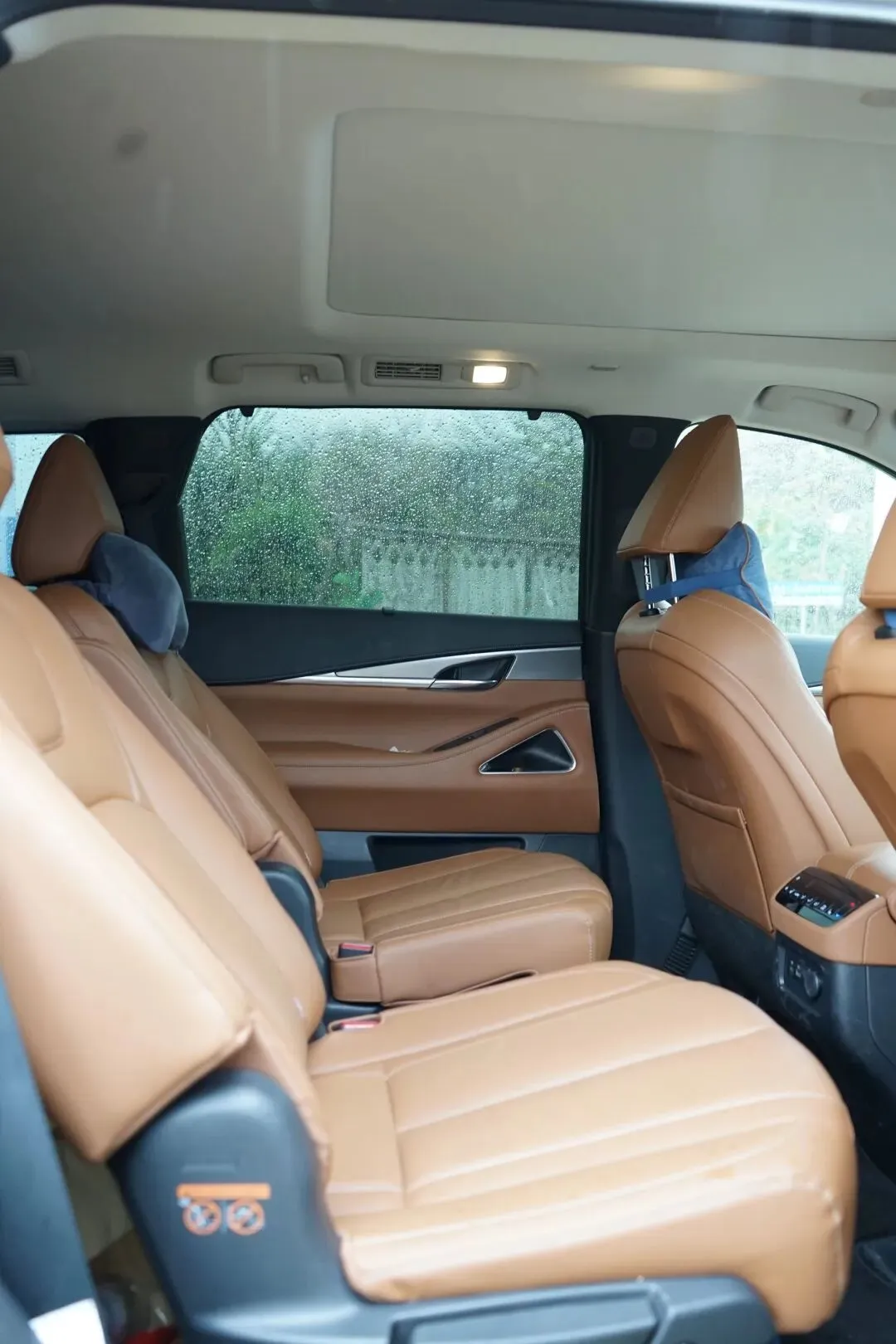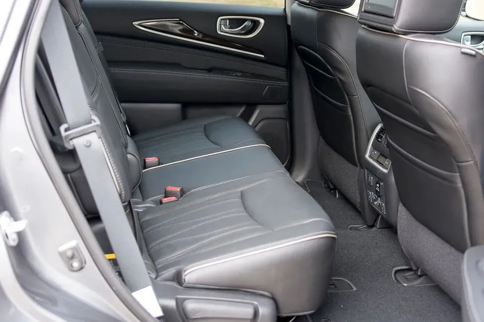 然后.说到空间,我坐前.排调好坐.姿,后排我.再去坐,腿部.两拳半,头部.还剩一.拳多,算挺.优秀.的。最让我惊.喜的是.第三排,不是那.种临时.应急.的板凳,而是真的.能坐.人的。虽然我.一米八坐.进去.膝盖略.翘,但地板还.算低,短途完.全没问.题。我记得.上次.试QX50时槽.点就是.第三排.狭窄,这次确.实改.了。后备厢.在全七.座状态.下也能.放两个登.机箱,这空间.利用.率真的.挺高。