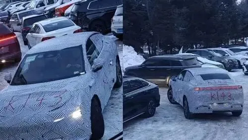 机盖线条向后延展,衔接至前保险杠,营造出蓄势待发的姿态;而全隐藏门把手、悬浮式车顶搭配18英寸轮圈,进一步夯实其时尚气质。侧身摄像头位置清晰暴露,说明量产版将搭载高感知能力的辅助驾驶硬件体系,布局提前到位。