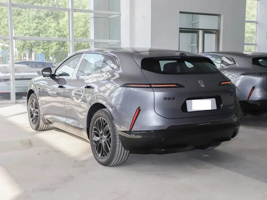 再来看车身侧面部分,车身侧面凭借精准比例设计,实现颜值与空间的平衡。1980mm的车宽搭配2940mm长轴距,营造出宽体低趴的运动姿态。车门采用隐藏式门把手设计,搭配从车头延伸至车尾的贯穿式腰线,让车身线条更显流畅舒展,有效降低风阻系数。全系标配19英寸铝合金轮毂,高配车型升级20英寸运动轮毂,造型锋利且抓地力出色,搭配245/45 R19宽胎,进一步强化运动质感。180mm的离地间隙适配城市颠簸路段与轻度非铺装路面,兼顾通过性与驾驶稳定性,满足多场景出行需求。