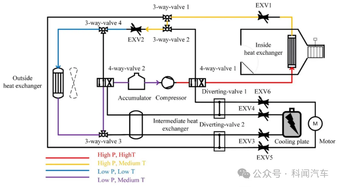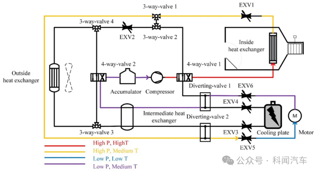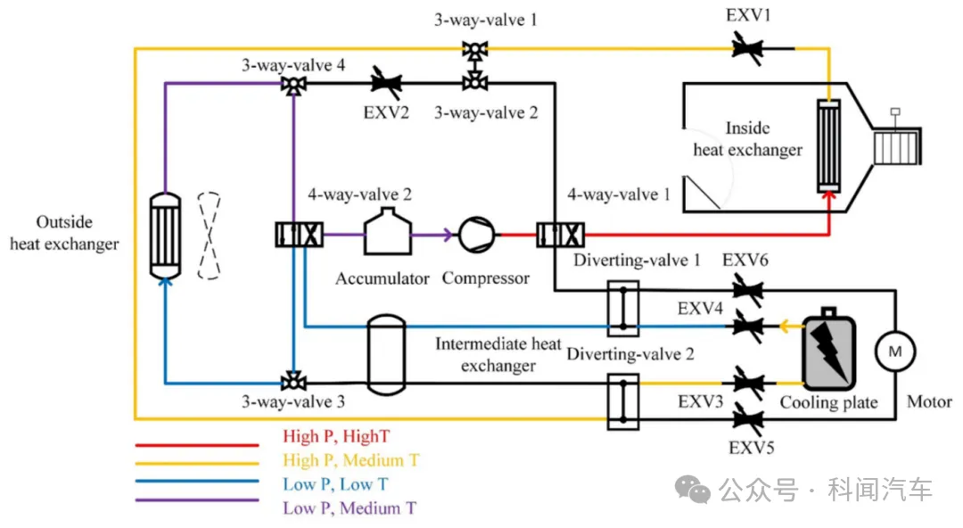 图1 系统示意图——乘员舱制热模式
