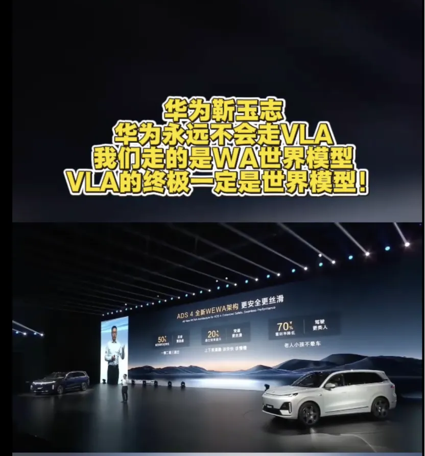 2. 世界模型为主,拒绝纯VLA:华为坚持该路线,推出WEWA架构(世界引擎+世界行为模型),靠云端生成海量难例场景,车端实时预演120秒动态,主打高速L3级安全决策,认为这是实现真正自动驾驶的终极方案。
