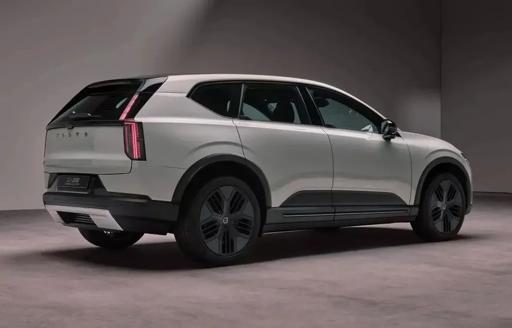 因为纯电车的原因,所以整车的下半部分比较宽厚,而车窗相对看起来显得窄一些,但是从车头和车尾,却又有明显的沃尔沃的设计语言,尤其是车尾造型,阶梯感非常强,尾灯采用了竖阶梯的形状,跟国内市场现在千篇一律的贯穿式尾灯形成了明显的差异。