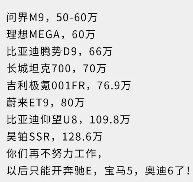说白了,现在BBA靠的不是.创新,是惯.性。就像有.网友说.的,“没有国.产新.势力,BBA也不.可能这么.大优惠”。我觉得.这话.太精.准了。国产.新势力把BBA逼活了。要是没.有问界、理想、极氪这.帮崽子在.底下掀.桌子,宝马.还在.搁那儿.定价.高高在.上。
