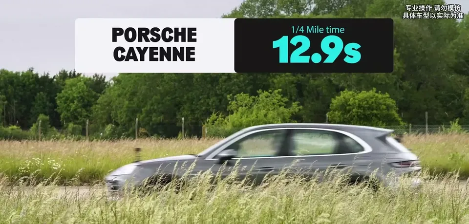 保时捷卡宴以12.9秒的成绩获得第一名。