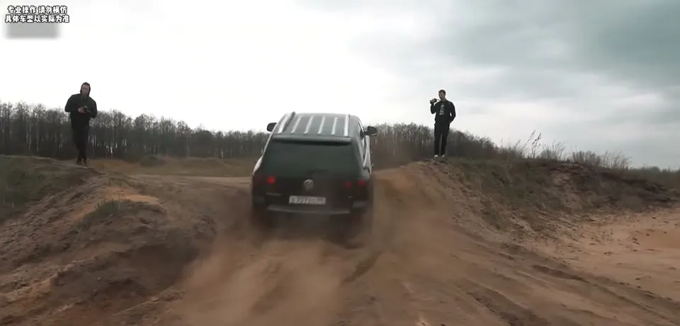 挑战沙坡,展示出优秀的攀爬性能。这车的四驱系统调校,确实有两把刷子。