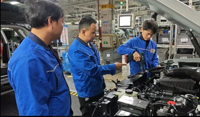 进入2026年,区域便将“细节把控”贯穿装配全流程,吊装四组根据班组实际,组建由3名拥有5年以上装配质量管控经验的资深员工组成专项检查小组,针对影响装配效率与品质的关键节点开展现场质量抽检。检查内容覆盖出口车零部件特殊物料、紧固力矩达标情况等核心指标,针对底盘悬挂等关键部件装配开展批次的专项抽检,对各易处错的工序实施“一岗一检”。通过集中攻坚与常态化管控,班组装配一次合格率从98.2%跃升至99.7%,因装配问题导致的返工率下降75%,大幅提升生产效率,为新一年产能冲刺扫清质量障碍。