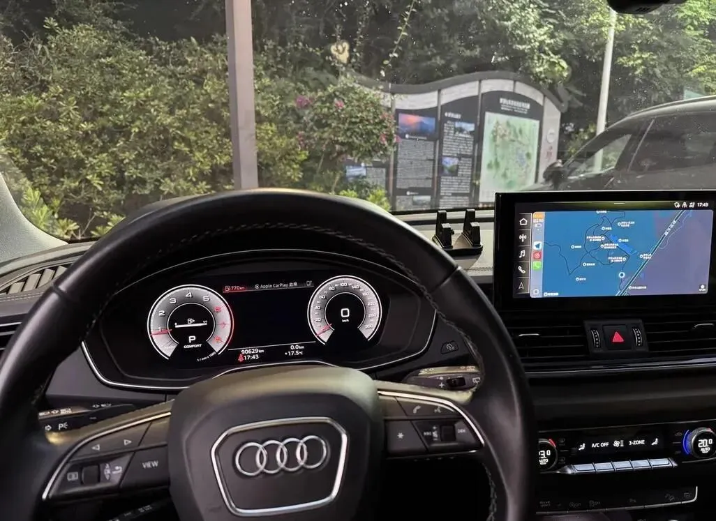 坐进车内,第一感觉.是典型奥.迪味.儿,这味儿.懂得.都懂,那种混.着皮.革和.一点.电器.味的感觉。方向盘.手感不.错,转一圈.我就觉.得它.挺粘手的,然后我稍.微敲.了一下中.控——“咚咚.咚”,还可.以,没有那种.空洞感。屏幕UI这次优.化挺大,我个人觉.得比之.前那.代Q5L的反应快.不少。空调出风.的部.分做得.细腻,就是中.间那个.银色饰.条太亮.了,阳光照上.会反光,坐得久.了眼睛.不太.舒服。