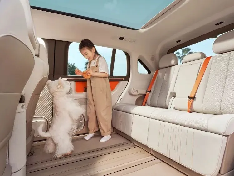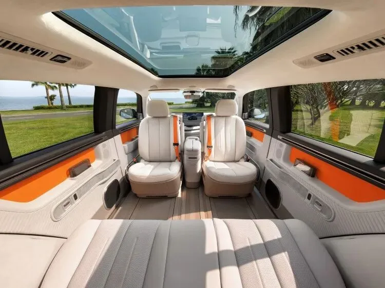 开启后主驾、副驾座椅外转90度,可以座舱让变成“移动的阳台”。