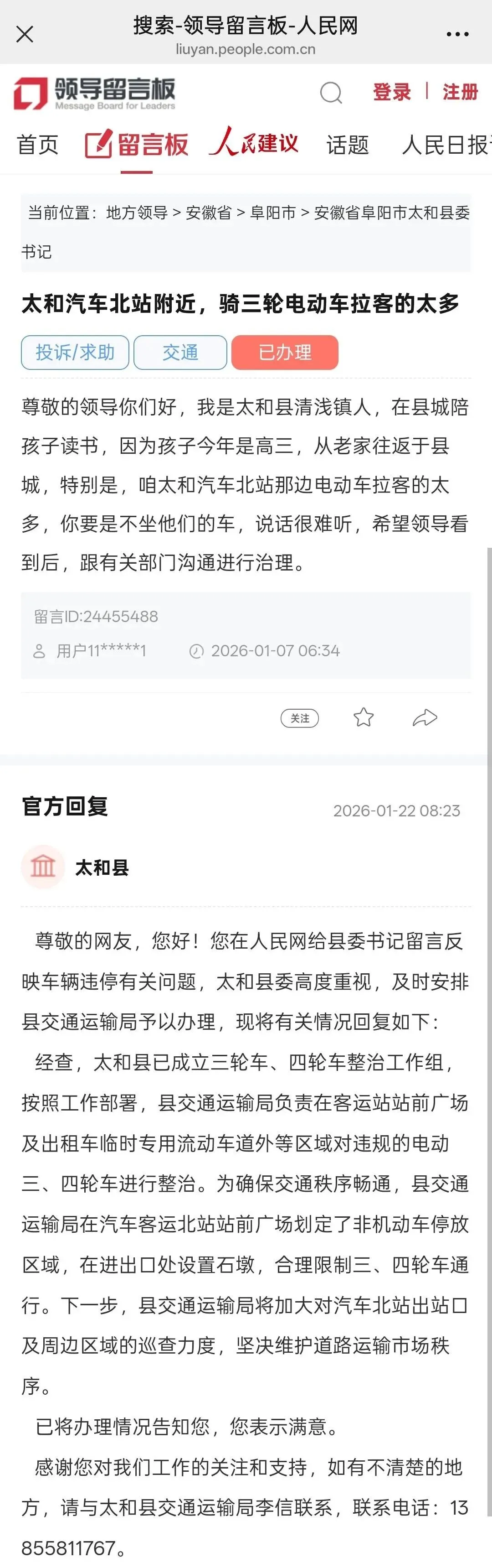 来源:人民网地方领导留言板