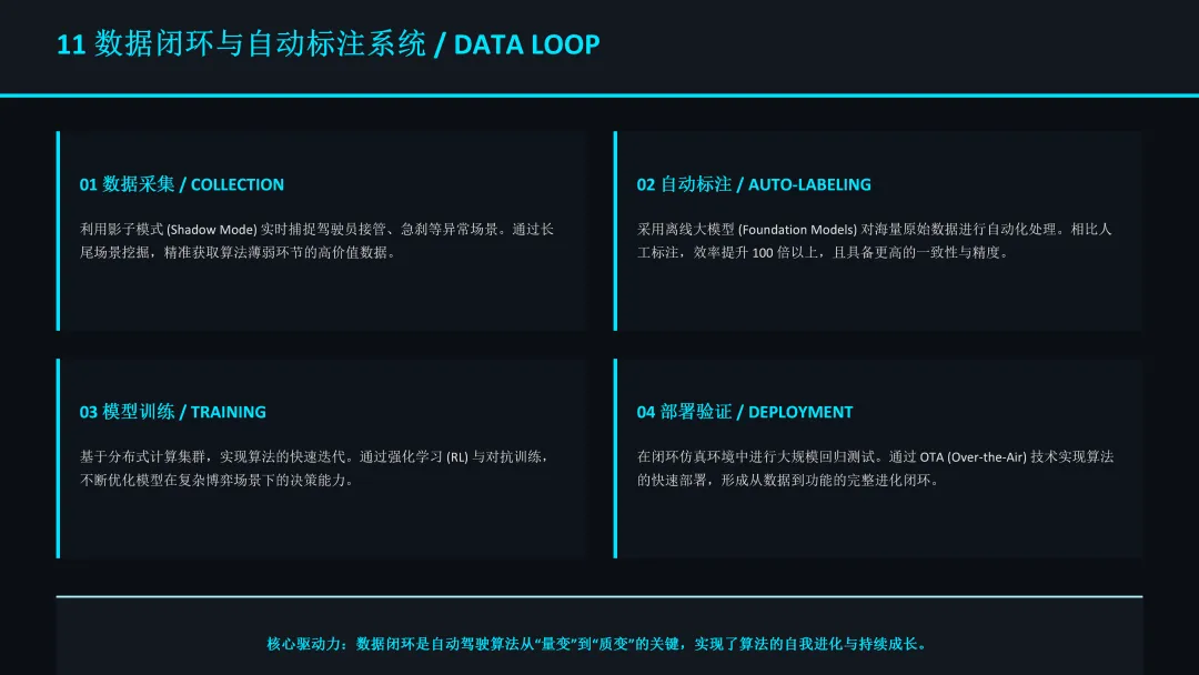·自动化标注:利用离线大模型和感知算法,实现对海量原始数据的自动化真值标注,将数据转化为高质量的训练资产。