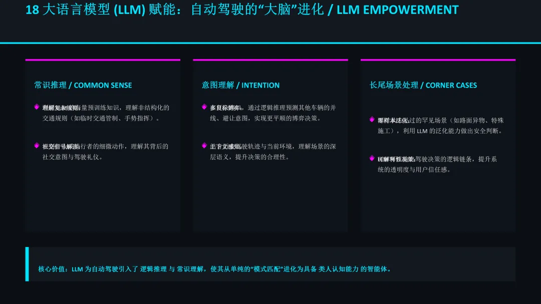 自动驾驶算法的下一个前沿是引入大语言模型(LLM)和视觉语言模型(VLM),实现从“感知”到“认知”的跨越。