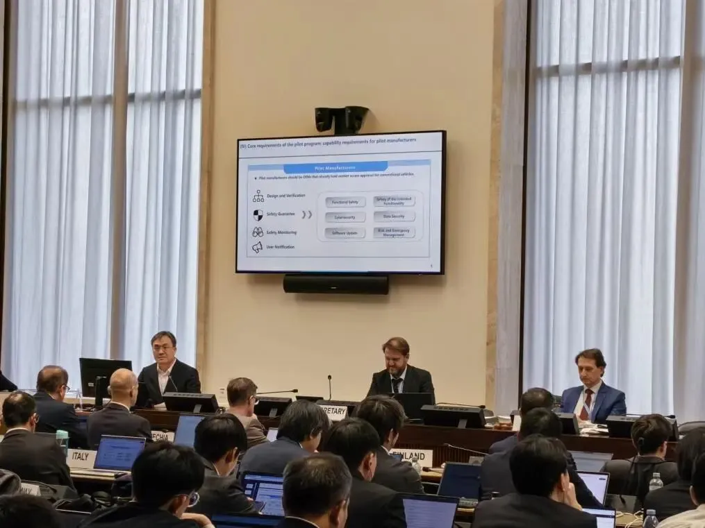其中最主要的是,自动驾驶系统(ADS)相关法规的制定工作已进入最后阶段——经过持续整合与修订,针对自动驾驶系统的联合国法规(UNR)与全球技术法规(GTR)已在本次会议上审议通过,并计划于2026年6月提交联合国WP.29大会审议,这标志着首个全球自动驾驶统一法规即将成形。同时,多项法规的修订与研究方向在本次会议上进一步明确:驾驶员控制辅助系统(DCAS)法规02系修订预计将于2026年6月提交审议;自动驾驶数据记录系统(DSSAD)的要求将被直接纳入ADS法规的附录中,而不再单独制定法规;信息安全与软件升级方面,除支持ADS法规中的网络安全条款外,小组还拟通过解释文件指导车辆生产多阶段中的型式批准问题。此外,会议也就设立新非正式工作组的提议进行了讨论,经讨论,决定暂缓成立“驾驶自动化场景”、“自动紧急制动系统(AEB)可靠性提升”两组,留待后续会议表决。