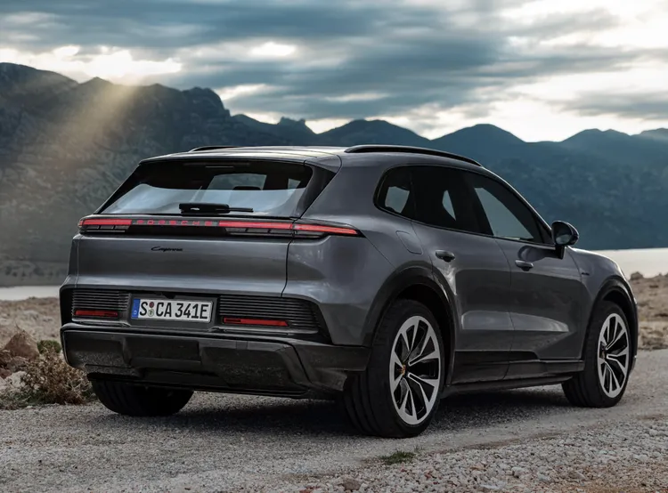 车尾部分,保时捷Cayenne纯电动版采用简洁的尾灯造型,中间带有PORSCHE英文发光字标。