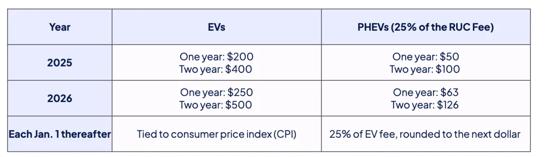 自 2025 年 4 月起,宾夕法尼亚州规定,电动车(EV)及插电式混合动力车(PHEV)的车主或注册人需缴纳年度道路使用费(RUC, Road User Charge)。