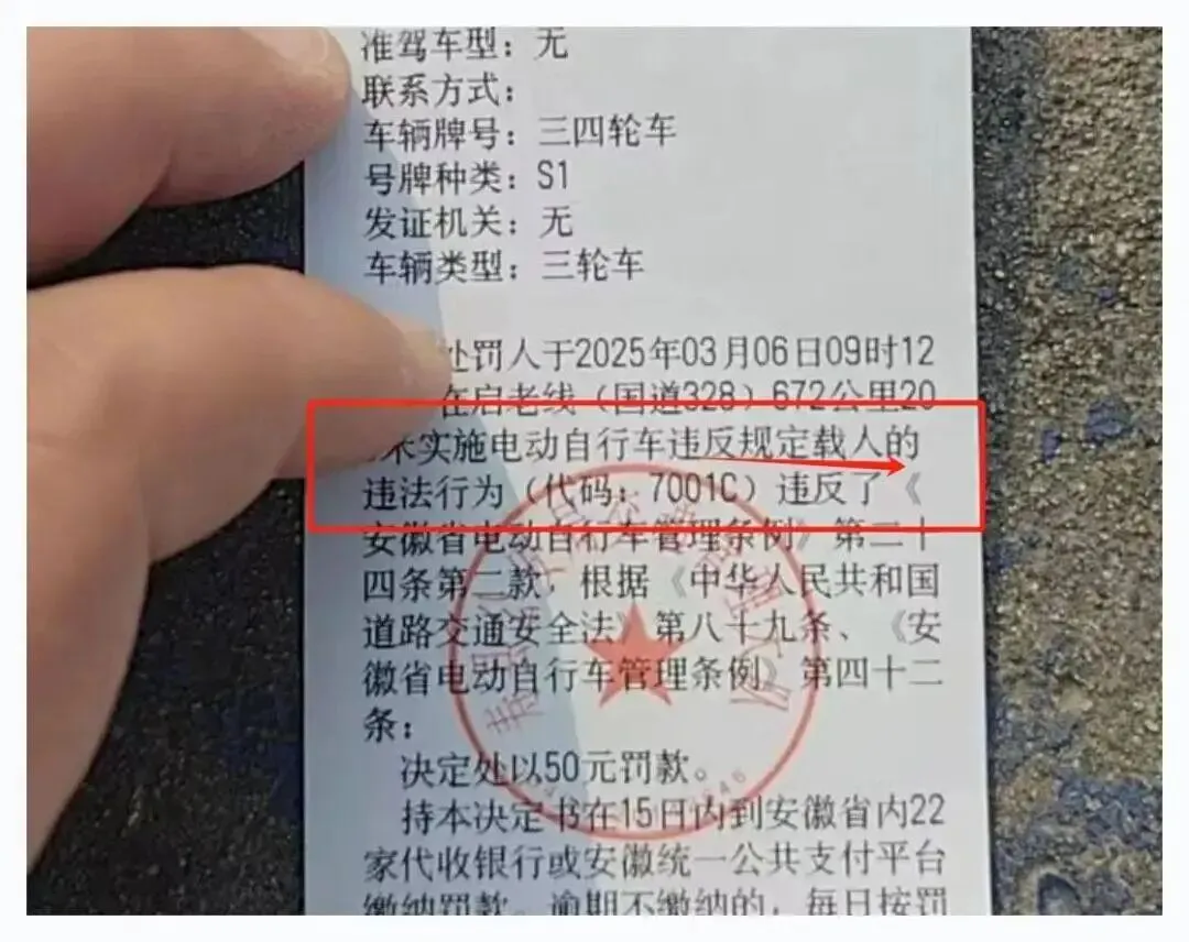 电动车载人被罚:后座都装了你说不让坐?真让人脑壳疼!