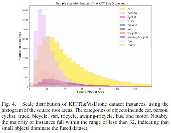 图4:KITTI和VisDrone2019数据集的实例分布,融合后显著提升小目标样本多样性