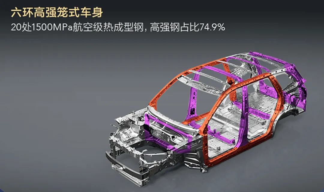 安全是五菱汽车的造车基石。被动安全上,车身采用六环高强钢笼式结构,高强度钢占比达到74.9%,关键部位更使用1500MPa热成型钢,构筑起钢筋铁骨般的防护。