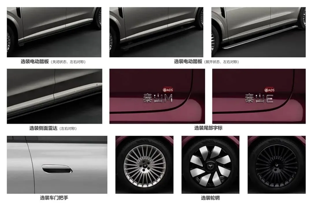 工信部最新一批新车申报目录中,岚图全新大型SUV泰山8正式亮相。该车延续泰山家族化的雕塑感造型,凭借魁梧的车身尺寸营造出强烈的视觉压迫感。细节来看,前脸采用无边界封闭格栅,内部辅以纵向镀铬饰条点缀;尾部配备一体化贯穿尾灯,中央设置岚图英文标识,前后设计元素遥相呼应。新车长宽高分别为5200/2025/1814mm,轴距3090mm,相较在售泰山车型(5230/2025/1817mm,轴距3120mm)在长度与轴距上分别缩减30mm,高度微调3mm。选装清单包含电动踏板等实用装备;智能驾驶层面,全系标配华为ADS激光雷达感知方案,高阶智驾能力可期。该车匹配智新科技制造的DFMC15TE3 1.5T混动专用发动机,峰值功率110kW。驱动单元采用双电机四驱架构,按性能区分为两档:低配版后电机215kW,高配版升级至230kW,前电机均为150kW。动力电池提供三种规格,44.5kWh版本续航190km,65.1kWh与64.8kWh分别对应300km及310km纯电行驶能力。● 奕派科技
