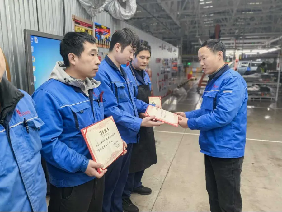何礼向获奖者致以祝贺,并向全体同仁发出倡议,希望获奖者珍惜荣誉、再接再厉,充分发挥榜样引领作用;更期待全体同仁以先进为标杆,在2026年继续坚守“安全第一、质量至上、效率优先、现场精益”的核心理念,凝心聚力、锐意进取,在总装SUV的生产线上续写更多精彩与辉煌。
