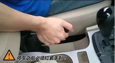 汽车停稳之后第一时间要拉紧手刹,防止溜车。因为不拉手刹造成的溜车撞车事故中,轻则撞车撞墙、重则车毁人亡。