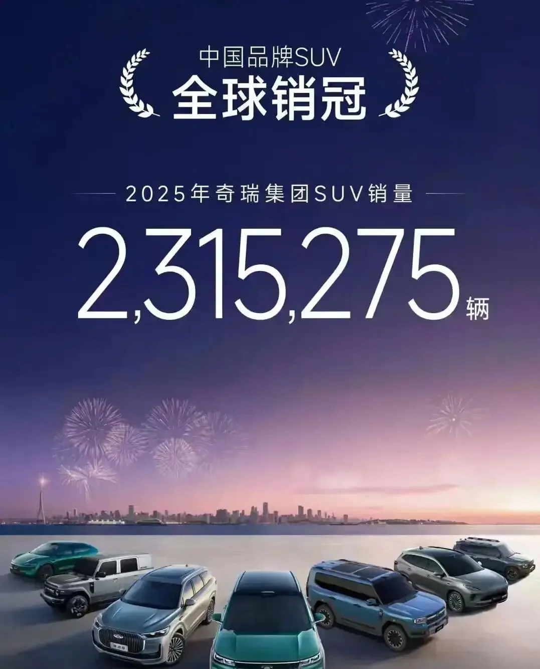 兄弟姐妹们,2025年奇瑞干翻了!中国品牌SUV全球销量第一,整整231万辆!新车还没上市,盲订首日订单直接破6000辆。现在急着买车的,先别掏钱,听我唠完这波神操作再决定——你猜为啥?