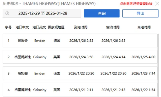 当地时间1月26日晚,巴哈马籍汽车运输船“泰晤士公路”号(IMO:9316294)在德国埃姆登港附近海域离港后突发机舱火灾,导致船舶失去动力与操控,漂浮于北海博尔库姆岛西北约15海里处,船上1294辆汽车面临风险。