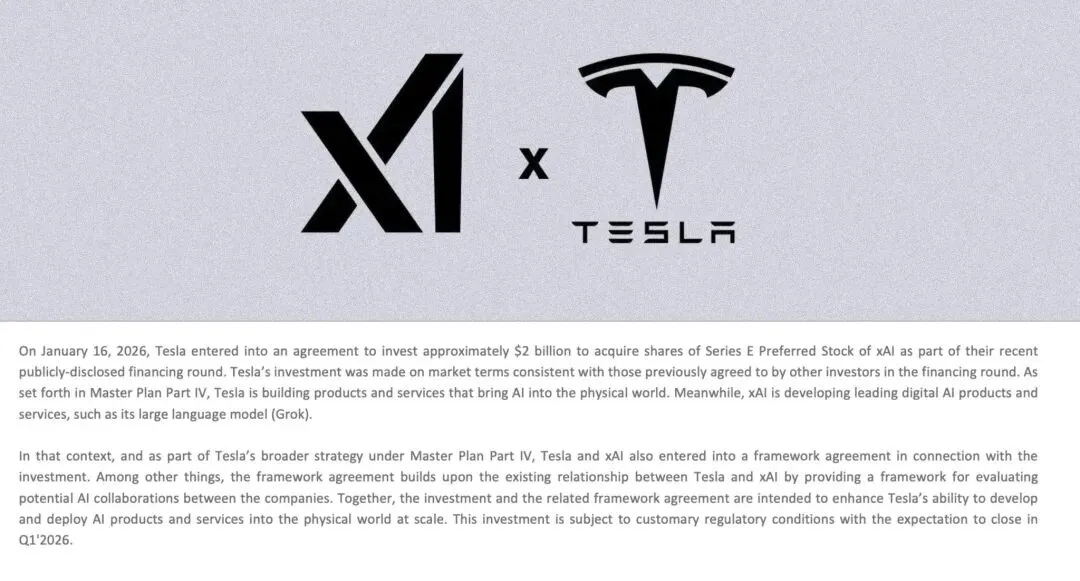 AI 圈的人会更关心这一段:特斯拉会向 xAI 投资大约 20 亿美元。