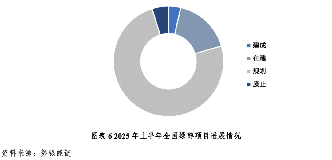 国内绿色甲醇正在规模化开发,经济性将不断提升。2024-2025年,国内绿色甲醇产业迎来爆发式增长。据统计,全国绿醇总规划产能近6000万吨/年,已建成产能为22.1万吨,2025年有望投产项目的产能共计65万吨/年。从地区分布来看,绿醇项目主要分布在风光资源较好的西北、东北等地区。从技术路线来看,生物质甲醇项目数量更多、产能占比更高,CO2加氢制甲醇的单个项目规模更大。