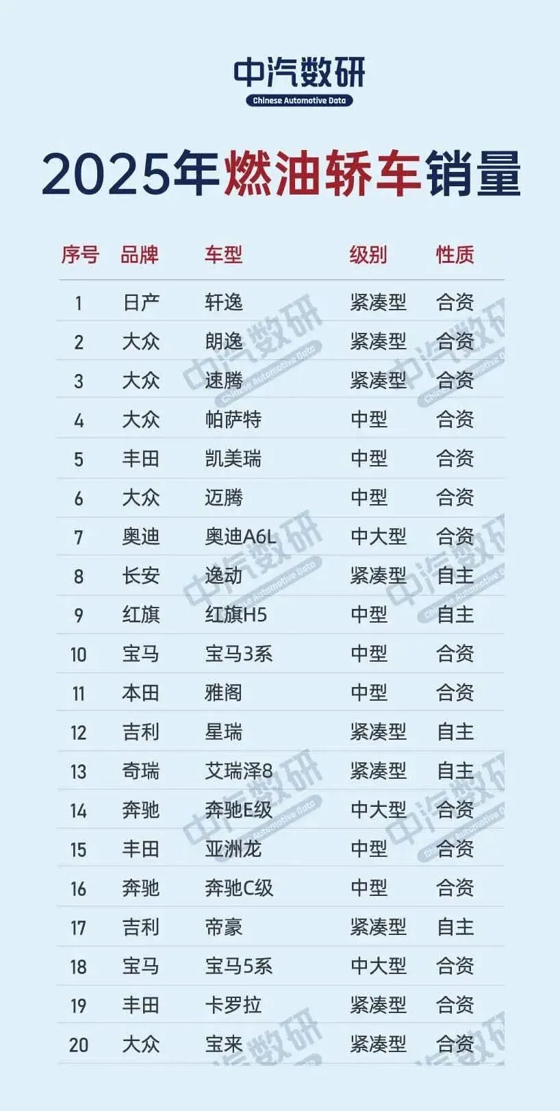 长安逸动(16.89万辆)、红旗H5(16.36万辆)进入燃油轿车TOP10,自主中高端燃油轿车的市场认可度持续提升;