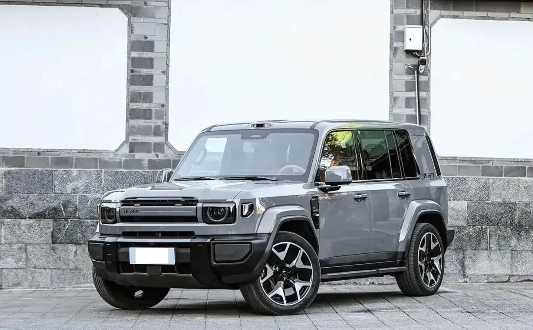 我们首先来看新车的外观设计方面,iCAR V27的车头设计采用了硬朗的方盒子造型,前脸以圆形头灯为核心,搭配方正的车身线条和分体式转向灯,营造出强烈的硬派越野视觉效果。车头下半部分为镂空设计,上半部分则采用封闭式处理,这种设计不仅提升了空气动力学性能,还增强了车头的层次感。 前挡风玻璃内部配有双目摄像头,为智能驾驶辅助系统提供支持。格栅设计层次分明,上半部分为封闭式,下半部分为镂空设计,侧面配有iCAR品牌标识。大灯外壳采用方形设计,内部日间行车灯为圆形,中间是远近光一体式大灯,侧面则配有转向灯,整体设计既复古又未来感十足。