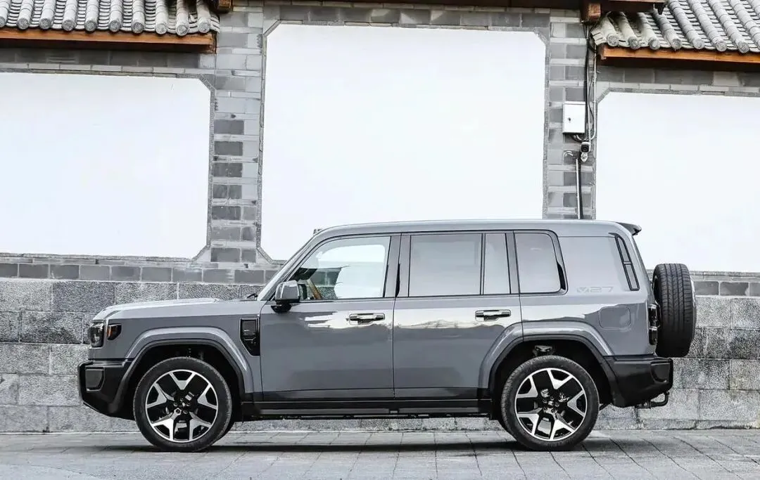 再来看车身侧面部分,iCAR V27的车身侧面线条硬朗笔直,一条腰线贯穿车门,黑色立柱营造出悬浮车顶的视觉效果。方盒子造型搭配黑色轮眉与大尺寸黑色轮毂,力量感强烈。 车身尺寸方面,小书包版长宽高分别为4909mm、1976mm、1855mm,备胎版则为5055mm、1976mm、1855mm,轴距均为2910mm,为车内空间提供了充足保障。侧裙配备轻量化铝合金分段式侧踏,既提升了实用性,又增强了外观的精致感。