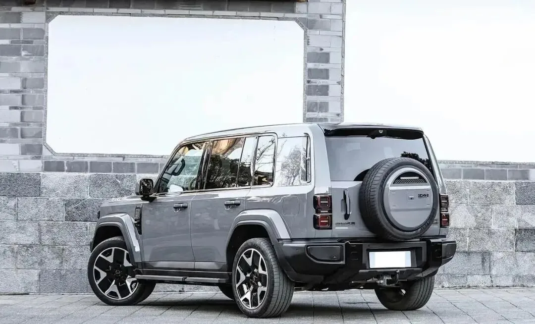 再来看车尾部分,车尾设计重心落在外挂式备胎罩上,备胎罩使用了车身同色造型,中央印有“iCAR”字样,竖直排列的红黑尾灯极具辨识度。后保险杠以黑色为主,兼具防护与简洁感,“iCAR V27”标识清晰呈现,整体设计硬派且协调。尾门采用侧开方式,门把手位于左侧,采用按钮开启。标识方面,左侧是奇瑞汽车的集团标识,右侧则是iCAR品牌标识和V27车型标识。