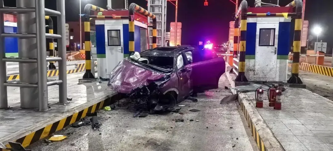 事发后,高速公安民警赶到现场处置。据介绍,车内仅有驾驶员殷某一人,车辆是一辆悬挂重庆牌照的领克新能源轿车。事故除导致车辆受损外,收费站的防撞设施等也有受损,所幸殷某仅受轻微伤,只是皮外伤,没有出现骨折等。