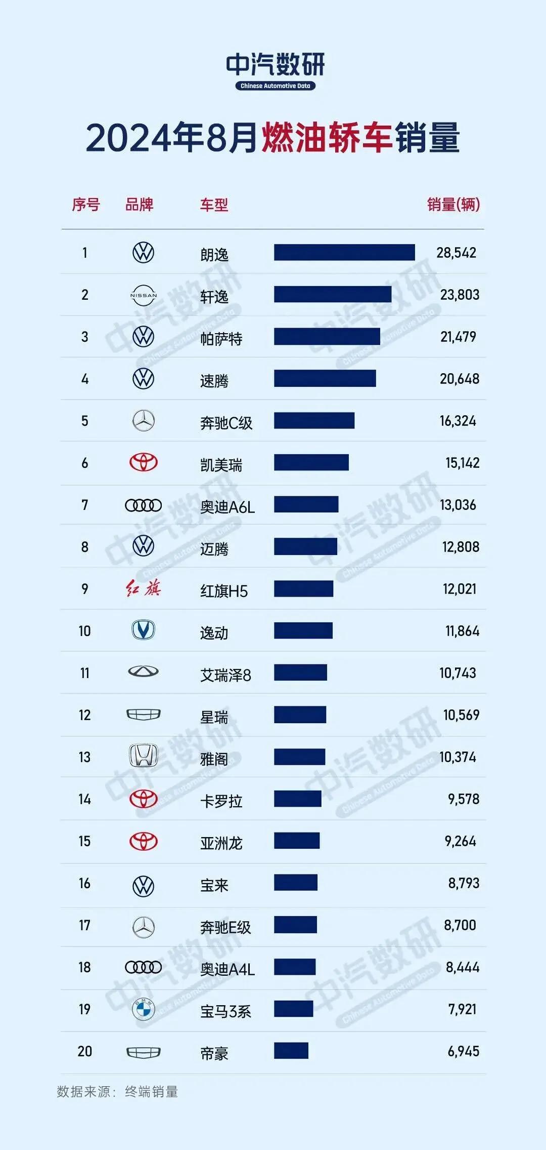 国产阵营中,红旗H5与逸动的破万销量成为亮点,标志着自主品牌在品质提升与品牌建设上的显著进步。相比之下,日系经典卡罗拉在国内市场的排名滑落至第十四,帝豪则紧随其后,位列前二十边缘,反映出市场竞争的激烈与消费者偏好的变迁。
