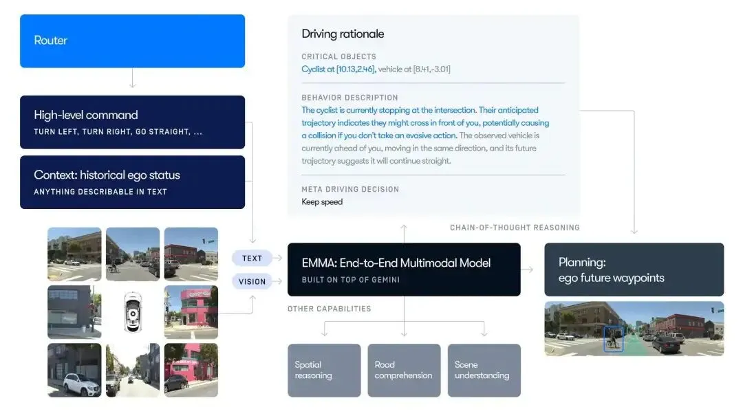 - 深度融合: 借助 Gemini 强大的视觉-语言跨模态能力,让自动驾驶具备了处理极端复杂、模糊场景的“常识”。