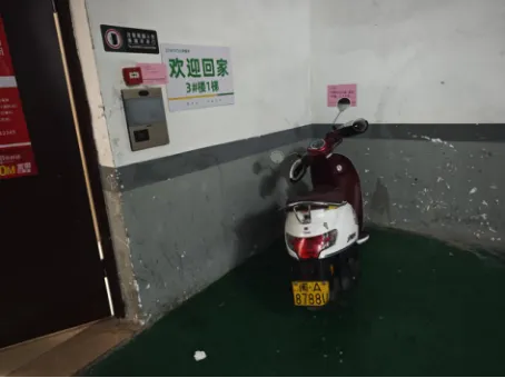 1月18日19时,车牌号为“福州E50M0”的车辆,在水部街道榕航花园3座3梯楼梯间违规停放。