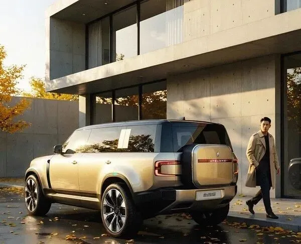 当“方盒子”造型重回潮流中心,它代表的早已不是单纯的复古情怀,而是一种对功能性与生活态度的直白宣言。享界这款全新SUV选择以此姿态入场,显然是有备而来。从渲染图看,其方正挺拔的轮廓绝不仅仅是为了视觉上的“帅”。近乎垂直的前风挡和车头、平直的车顶与腰线,首先贡献了极佳的车内空间利用率,为每一位乘员争取到更宽裕的头部和纵向空间。那宽大突出的轮眉,不仅强化了视觉上的稳定感,更暗示着其轮胎尺寸与悬挂行程可能拥有更大的设计自由度,为应对复杂路况埋下伏笔。而车尾外挂的“小书包”,无论是备胎还是储物箱,都是一种非常实用主义的越野语言,节省车内空间的同时,也成为了一个鲜明的身份标识。