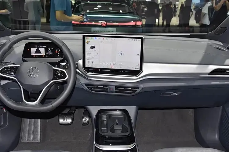 内饰方面,新款ID.4 CROZZ配备了12.9英寸悬浮式中控屏,搭载了大众最新的ID.S 5.0车机系统。系统支持语音控制、导航、蓝牙手机互联及OTA在线升级等功能。仪表盘尺寸为5.3英寸。车内换挡机构为怀挡式设计,方向盘为平底式。