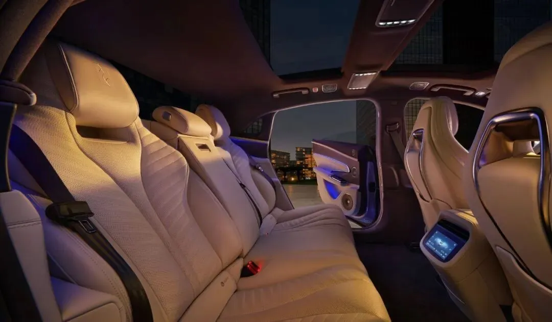 我昨天.刚去店里.看了实.车,那个气场真的有.点东西。车头.特别宽,那个封闭式格栅尺.寸还是挺夸张的,然后灯组那一圈曲线,带点概念.车那种味儿。整车比例有点.像帕拉梅拉那种溜背,但更.厚.实更敦。看着就知道这.车得重,150度电的电池,车重.两吨多不.是事儿。