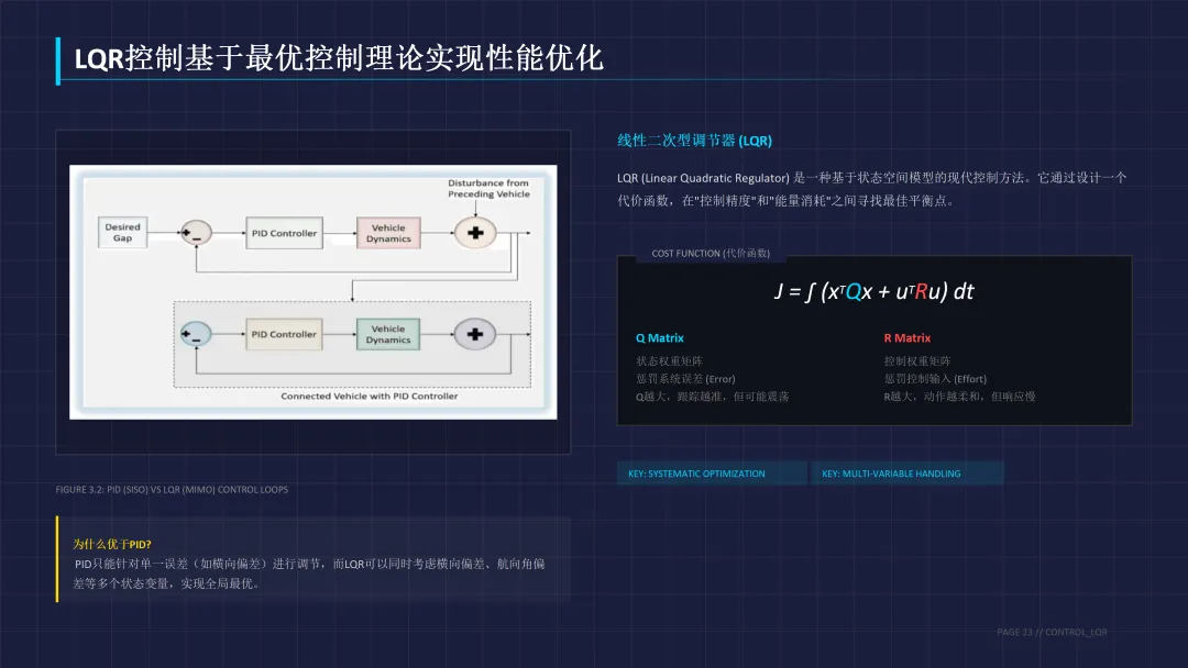 ◦LQR (线性二次调节器): 基于最优控制理论,性能更优。
