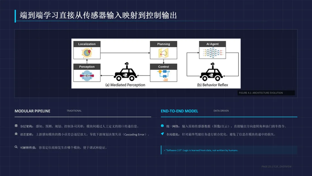 这些新范式旨在解决传统模块化方法中误差累积和规则设计复杂的问题,通过大规模数据驱动的方式,让系统学习到更通用和鲁棒的驾驶能力[4]。