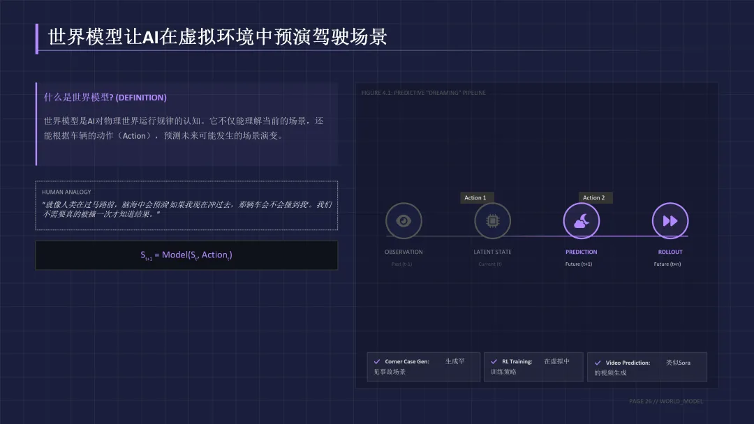 世界模型(World Model) | 训练一个生成模型来模拟真实世界的动态演化,使AI能在“想象”中进行规划和训练。 | GAIA-1, DriveDreamer |