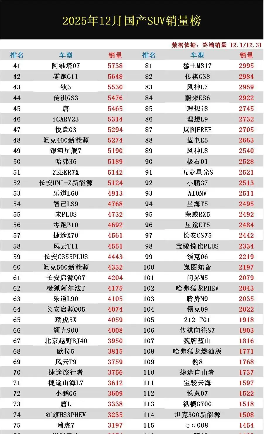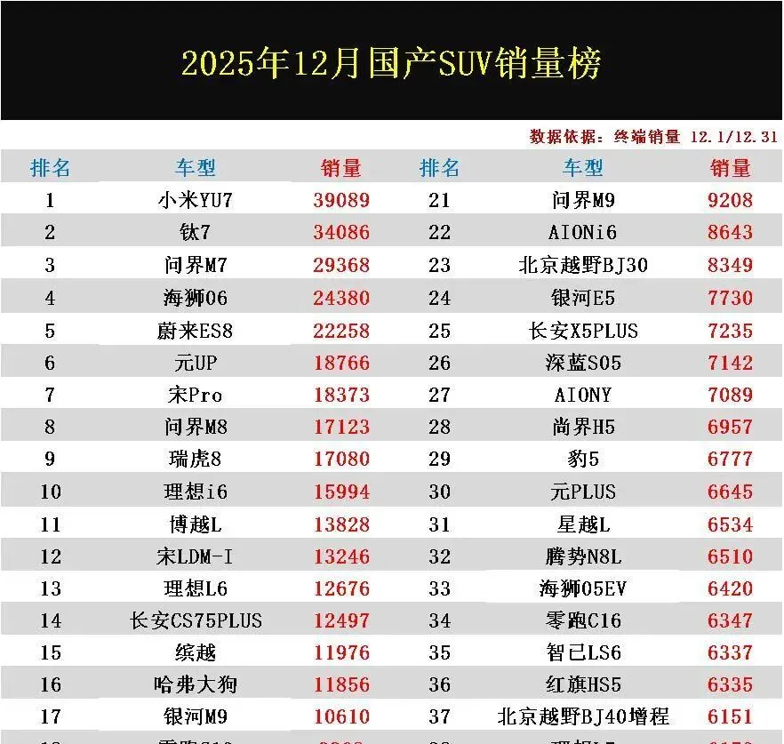 国产SUV这波,又顶上来了,智能化、电动化、价位亲民,三板斧齐下,销量直接见真章,结果呢,52款月销过五千,前17全都破一万,热闹不热闹?