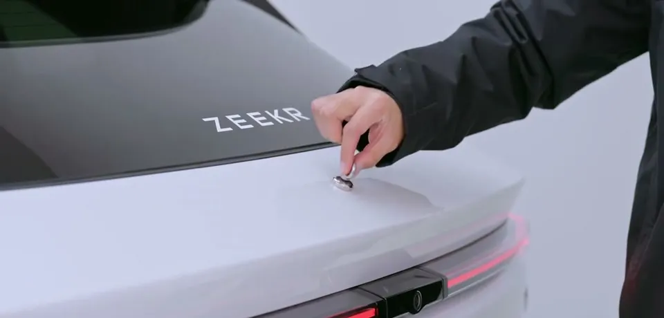 极氪7X尾部展示,尾门上半部分为塑料材质
