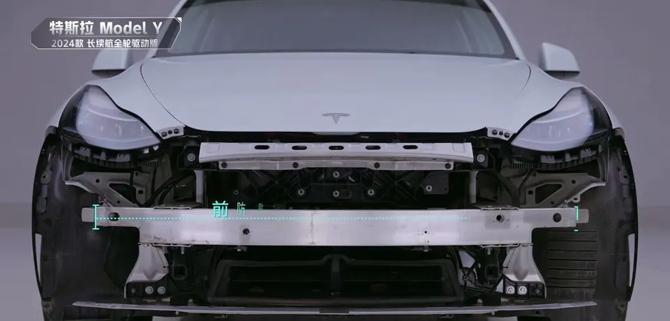 Y拆除前保险杠,展示防撞梁及覆盖率